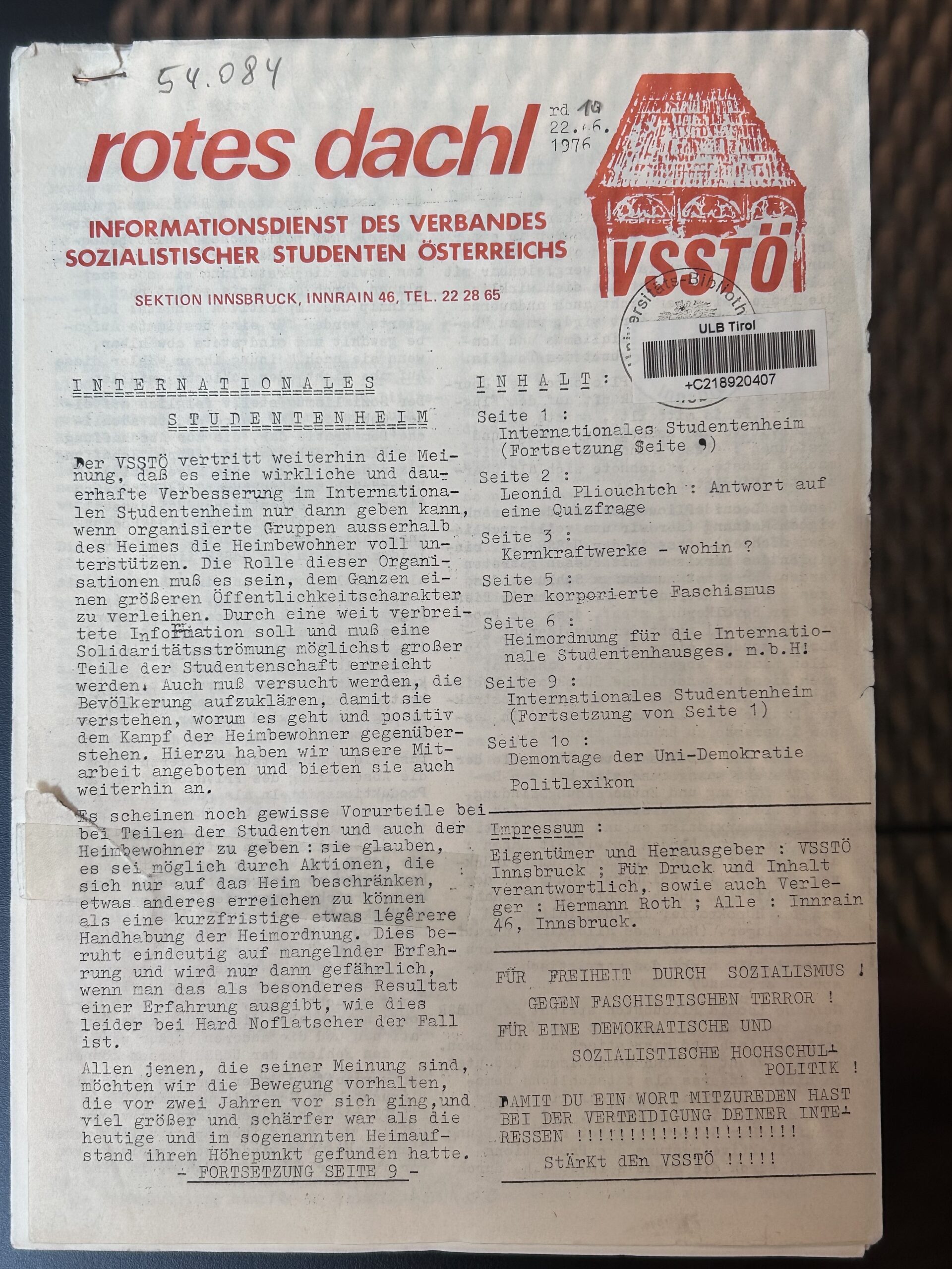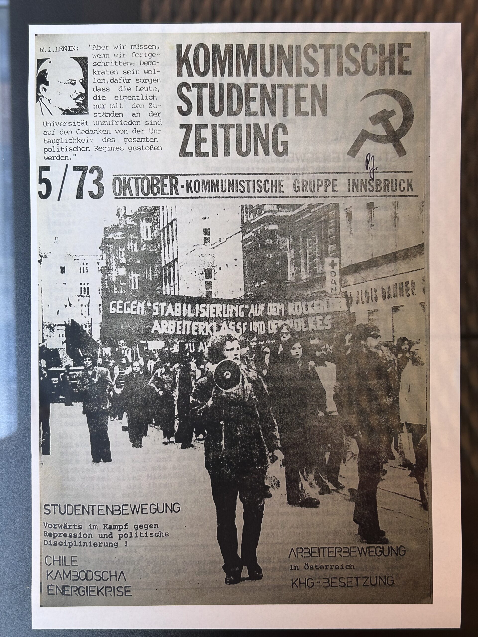 In July 1974, the Z6 was also temporarily over. Articles about the contraceptive pill and the Z6 newspaper's criticism of the Catholic Church were too much for the strict bishop. Rusch had the keys to the youth centre changed without further ado, a method he also used at the Catholic Student Union when it got too close to a left-wing action group. The Tiroler Tageszeitung noted this in a small article on 1 August 1974:
