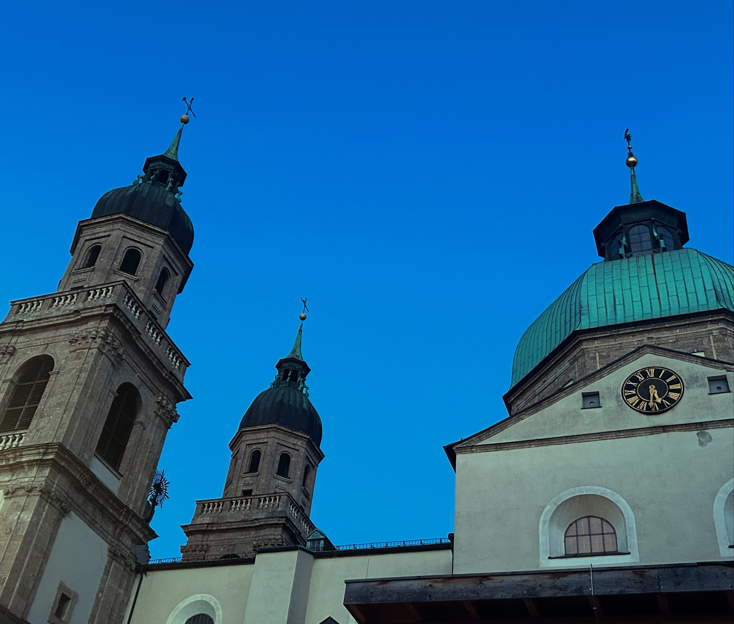 Wer in Österreich unterwegs ist, kennt die Kuppen und Zwiebeltürme der Kirchen in Dörfern und Städten. Diese Form der Kirchtürme entstand in der Zeit der Gegenreformation und ist ein typisches Kennzeichen des Architekturstils Barock. Auch in Innsbrucks Stadtbild sind sie vorherrschend. Die bekanntesten Gotteshäuser Innsbrucks wie der Dom, die Johanneskirche oder die Jesuitenkirche, sind im Stile des Barocks gehalten. Prachtvoll und prunkvoll sollten Gotteshäuser sein, ein Symbol des Sieges des rechten Glaubens. Die Religiosität spiegelte sich in Kunst und Kultur wider: Großes Drama, Pathos, Leiden, Glanz und Herrlichkeit vereinten sich zum Barock, der den gesamten katholisch orientierten Einflussbereich der Habsburger und ihrer Verbündeten zwischen Spanien und Ungarn nachhaltig prägte.