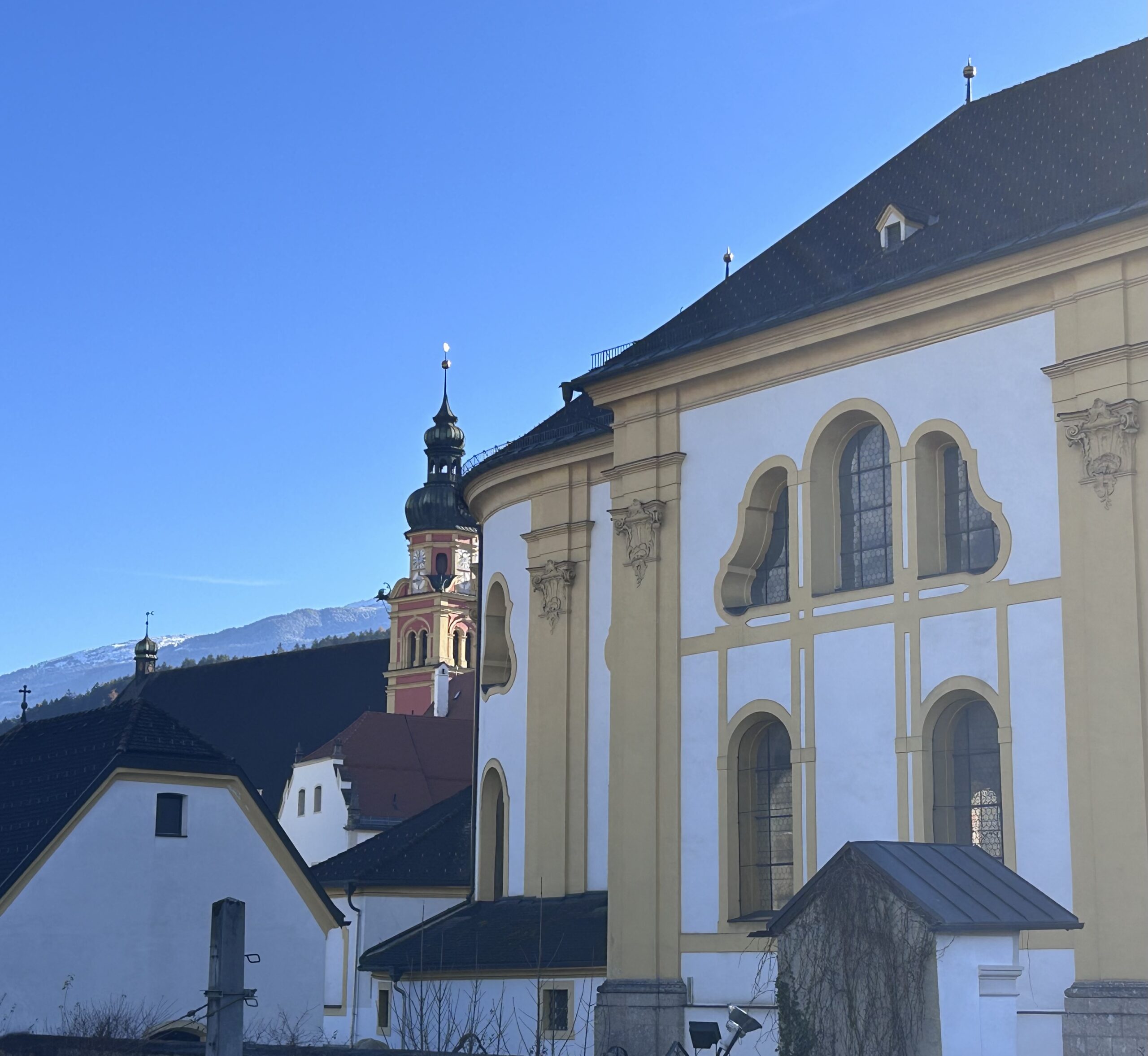 Es ist ein Merkmal städtischer Erweiterung und Entwicklung, dass Infrastruktur sich nicht nur technisch verändert, sondern auch was die Positionierung innerhalb der Gemeinde angeht. Friedhöfe und Krankenhäuser wachsen nicht nur, sondern verlagern sich häufig in Richtung der neuen Randgebiete. Als Innsbruck von der kleinen Gemeinde an der Brücke zu einer Stadt wurde, verlegte man den Friedhof von der Pfarrkirche innerhalb der Stadtmauern neben das Stadtspital an den heutigen Adolf-Pichler-Platz. Die sich ausdehnende Hofburg unter Kaiser Maximilian benötigte den Platz des alten Gottesackers. Im 19. Jahrhundert, als um die Spitalskirche und den Gottesacker mehr und mehr Gebäude in die Höhe wuchsen, wanderten beide Institutionen nach Westen. Der Tiroler Kunsthistoriker Heinrich Hammer (1873 – 1953) beschrieb die Umsiedlung 1923 in seinem Buch Kunstgeschichtlicher Führer durch die Bauwerke und Denkmäler folgendermaßen: