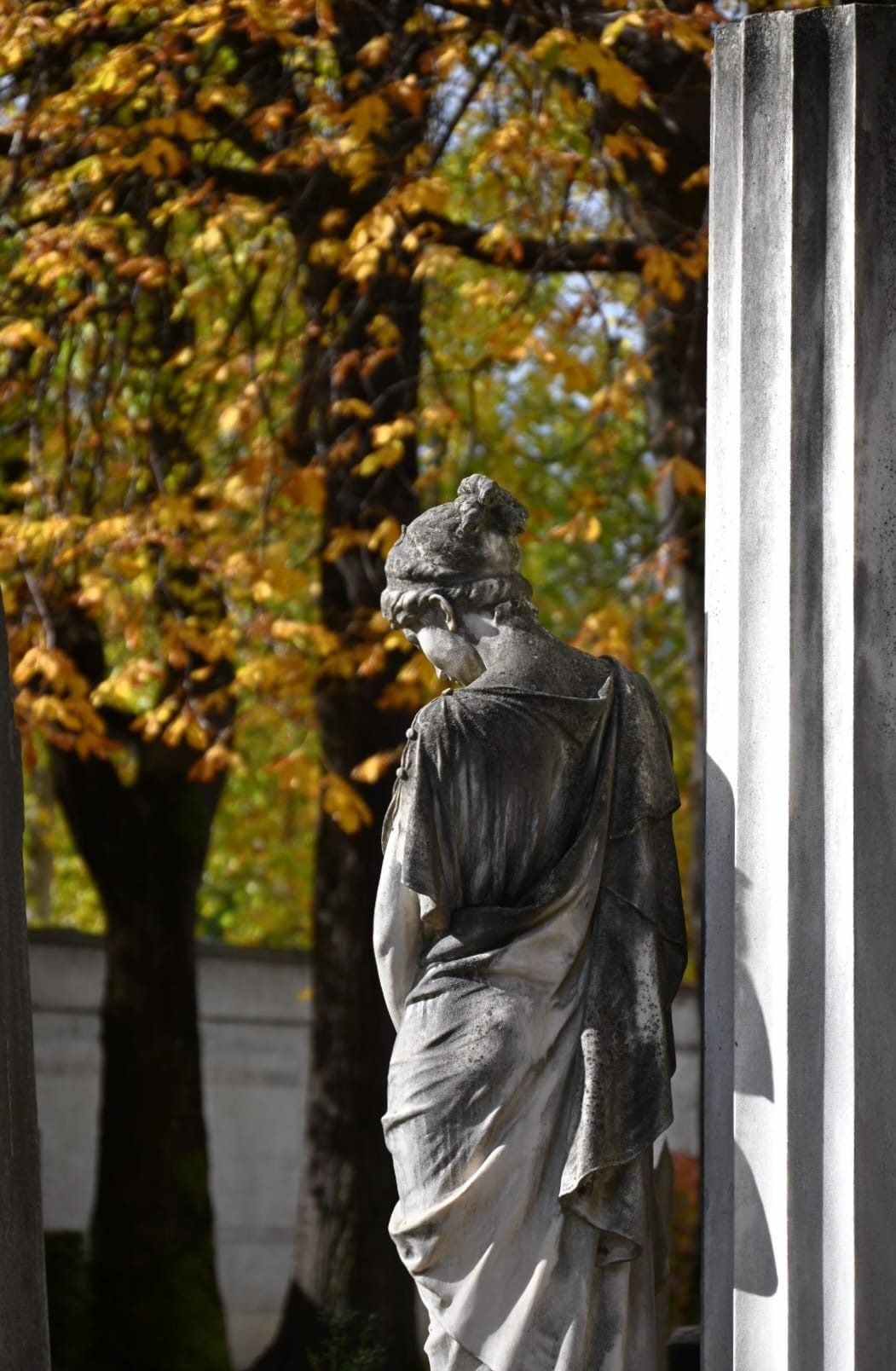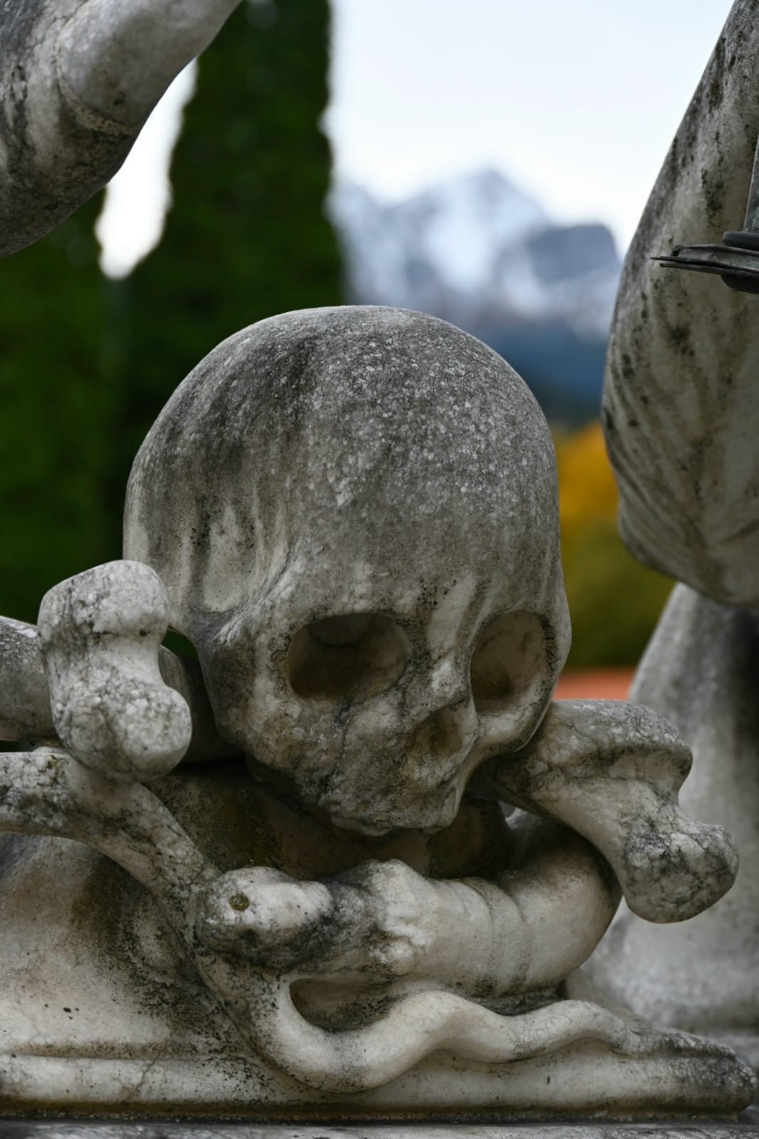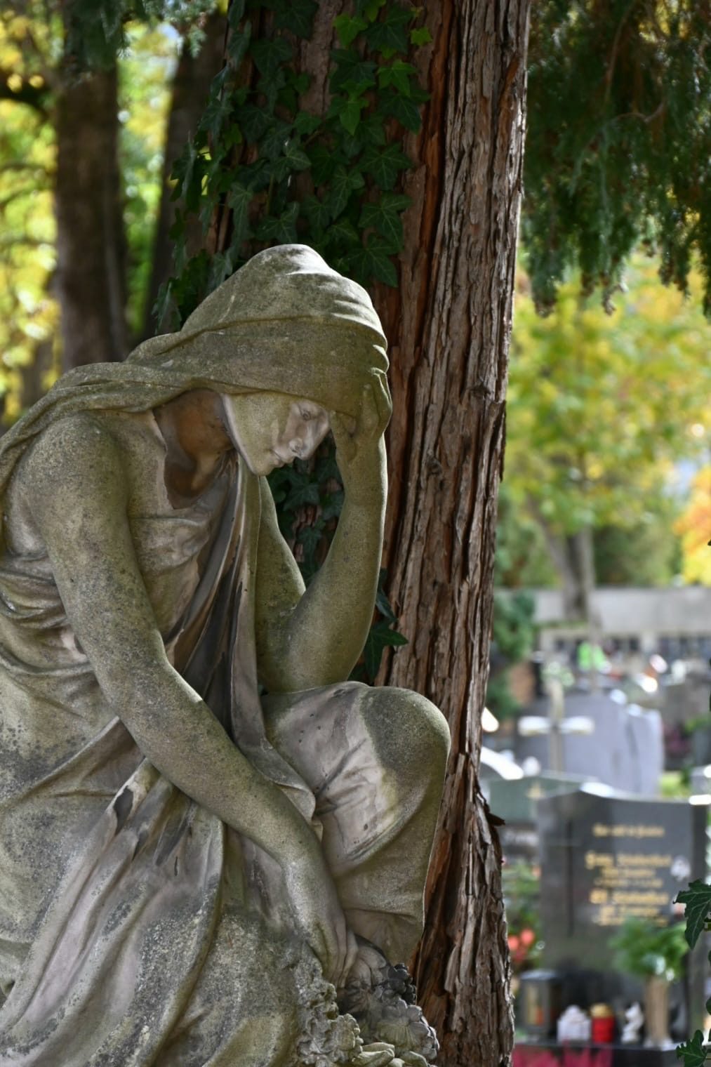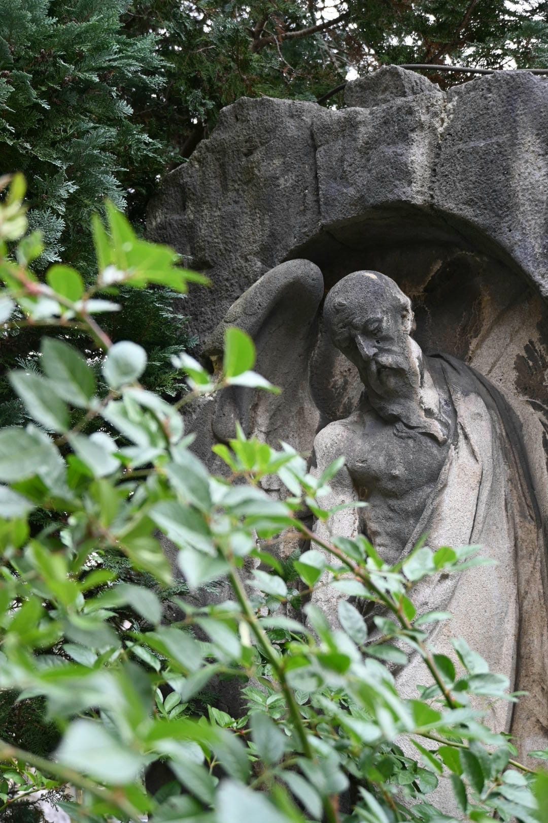 Das Denkmal zeigt Saturn, das römische Äquivalent zum griechischen Gott Chronos. Die kunstvoll gestalteten Figuren im Stil der klassischen Antike erstaunlich gut in die 1870er Jahre, die vom beginnenden Historismus geprägt waren. Saturn war der römische Schutzpatron der Zeit, des Ackerbaus und der Fruchtbarkeit. Der Legende nach verschlang der Himmelsvater seine eigenen Kinder, um zu verhindern, dass er von ihnen als Herrscher entmachtet wird. Sein Sohn Jupiter, der griechische Zeus, wurde aber gerettet und konnte ihn stürzen. Das Denkmal zeigt Saturn in Gestalt eines Todesengels, der einer trauernden Frau über einen Totenkopf gebeugt unbarmherzig eine abgelaufene Sanduhr vorhält, während ein Kind am Fuße des Sarkophags sein Gesicht mit einem Schleier verhüllt.
