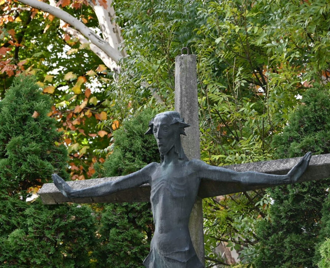 Die Umsiedlung war nicht nur dem Platzmangel geschuldet, auch die Hygienevorstellungen der Menschen gingen nicht mehr konform mit einem Friedhof mitten im Zentrum. Der aufgeklärte Kaiser Josef II. scheiterte zwar mit seinem Wunsch nach mehr Rationalität beim Thema Tod und Sterben, der in der Einführung von wiederverwertbaren Klappsärgen gipfelte, in der Zeit nach 1848 brachen aber auch im katholischen Tirol neue Zeiten an. Die Stadt Innsbruck schrieb 1855 einen Wettbewerb zur Gestaltung eines neuen Friedhofs aus. Die Vorgaben waren ein rechteckiger Grundriss und die Gestaltung der Anlage nach dem Vorbild eines italienischen Campo Santo. Carl Müller konnte sich mit seinem zeitgenössisch modernen Entwurf mit mehreren Eingängen und kunstvoll gestalteten Arkaden, die die heute nördlich von der Einsegnungshalle gelegenen Gräberfelder umfasste, durchsetzen. Der neue Friedhof wurde im Sommer 1856 auf den unbebauten Wiltener Feldern südlich des Innrain gebaut. Der Arkadengang wurde von Franz Plattner, August von Wörndle, Mathias Schmid und Georg Mader, einem der Mitbegründer der Tiroler Glasmalerei, in einem späten Wurf des damals modernen, romantischen Nazarenerstils gestaltet. 1859 schaffte der Brunecker Künstler Josef Gröbmer (1815 – 1882) die Statue des Auferstandenen über dem damaligen Hauptportal am Nordeingang