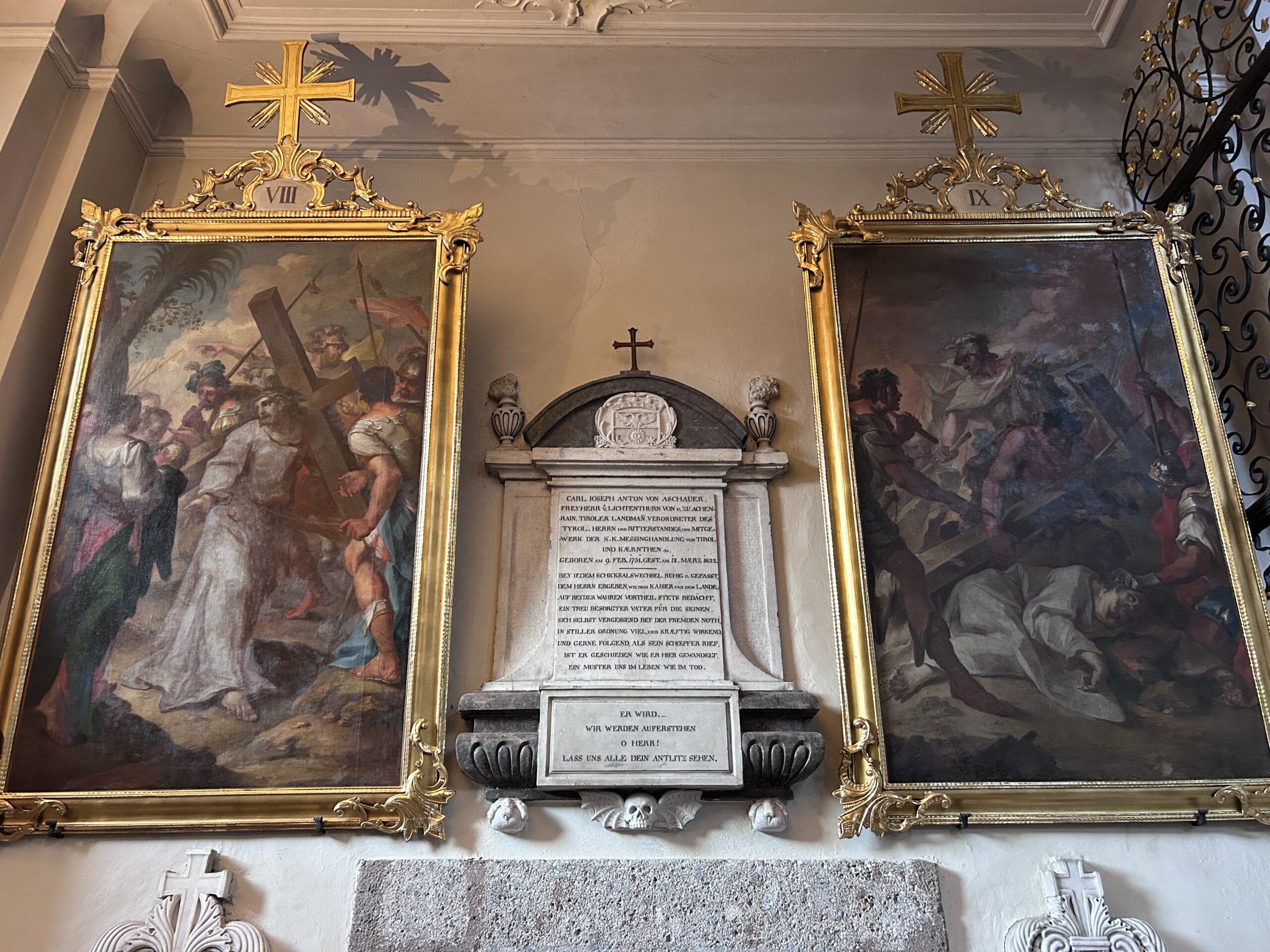 Die ältesten Ehrengräber wurden wie auch das Kruzifix im Zentrum des Nordteils der Anlage 1858 vom alten städtischen Friedhof auf den neuen Zentralfriedhof übertragen, zum Beispiel die Grabstätte des Hofbildhauers unter Ferdinand I. Alexander Colin (1527 – 1612), der sich sein Denkmal mit der Erweckung des Lazarus zu Lebzeiten selbst schuf, oder des Vertreters der frühen Aufklärung in Österreich und Kanzlers von Tirol Josef von Hormayr (1705 – 1779). Ein besonders gruseliges Denkmal am Nordeingang erinnert an diese Übersiedlung. Josef fertigte das Ensemble 1775 für die Grabstätte der Grafen Wolkenstein-Trostburg an, einem der ältesten Adelsgeschlechter Tirols. 1873 wurde das neogotische Denkmal von der Stadt direkt vor dem Haupteingang aufgestellt. Im selben Jahr erwähnten die Innsbrucker Nachrichten das Denkmal lobend in einem Bericht rund um den Friedhof zu Allerseelen: