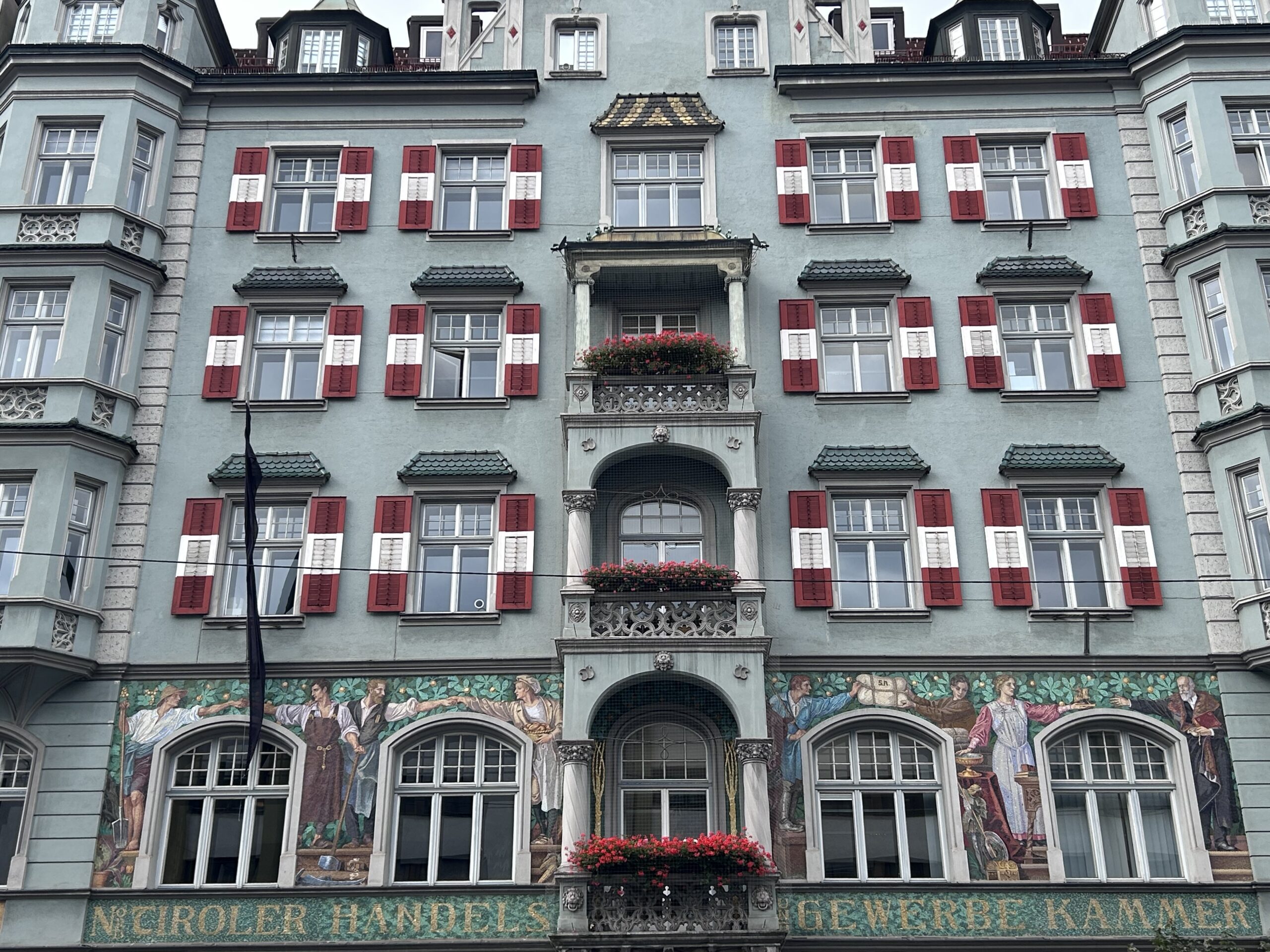 Das Gebäude, in dem die Wirtschaftskammer Tirol heute ihren Sitz hat, ist ein sehenswerter Mix verschiedener Stilrichtungen. Geschmückt mit Erkern und Türmchen wirkt das Gebäude wie ein kleiner Palast. Die Architektur wurde vom Münchner Architektenbüro Ludwig Lutz geplant und ist ein Beispiel für den Historismus und den Heimatstil, die beiden dominanten Stile dieser Zeit. Der oberste der Erker stellt eine kleine Imitation des Goldenen Dachls dar und demonstriert damit die Verbundenheit der Wirtschaftskammer zur Tiroler Tradition. Die Mosaikfassade im Jugendstil stellt die verschiedenen Wirtschaftszweige als Personen dar, die sich über den Fenstern die Hand reichen. Sie wurde vom Schwazer Künstler Alfons Siber (1860 – 1919), der in der Tiroler Glasmalerei- und Mosaikanstalt gelernt hatte, unter dem Titel Allegorie von Handel und Gewerbe entworfen. Siber war ein finanziell äußerst erfolgreicher Maler, dem jedoch der Stallgeruch des großdeutschen nachhing. Viele seiner Werke waren von der germanischen Mythologie inspiriert. Die liberalen Gründer der Tiroler Handels- und Gewerbekammer, die zu einem großen Teil der großdeutschen Strömung angehörten, störte das nicht.